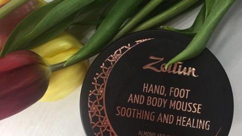 С косметикой Зейтун познакомилась недавно,это мое второе средство от бренда. раньше я не любила средства для тела, но когда поняла что моя кожа на ногах стала совсем сухой,решила что надо исправлять.Смягчающий восстанавливающий мусс для тела,рук и ног "Миндаль и карите" Мусс довольно приятно, мягко и тепло пахнет, аромат легкий, не надоедает. Не химический, не приторный, что довольно часто бывает...