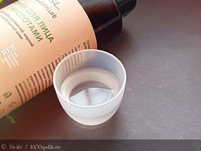 У этого тоника легкая, водянистая текстура, и пахнет он очень приятно – цитрусами. Впитывается моментально, вообще не липнет и не ощущается на коже.