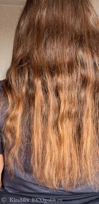 Нежная, равномерно впитывающаяся текстура обволакивает каждый волосок и разглаживает их уже в ванной в мокром состоянии. Мои волосы после неё выглядят как после салонного ухода. Полотно волос гладкое, блестящее! Они живые, на ощупь шелковистые и словно играют в лучах солнца. Хорошо и отчётливо виден "рисунок" окрашивания. Даже кончики выглядят достойно, нет сухости, они как-будто запаянные. Волосы легко расчёсываются, не пушатся и не электризуются.