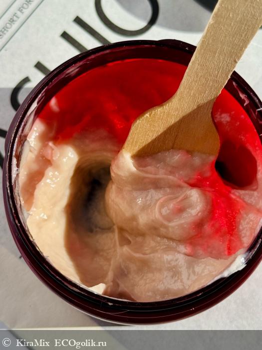 Текстура однородная, нет никаких вкраплений, отслоек и прочего. По консистенции маска напоминает термостатную сметану.