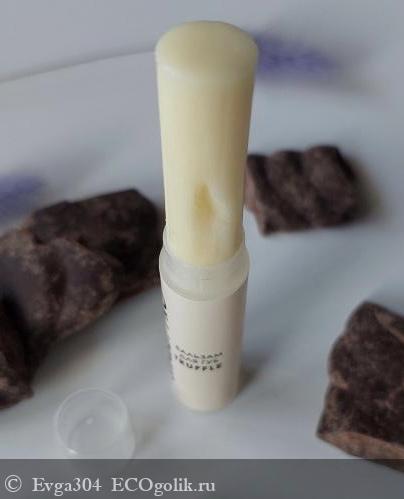 Бальзам 'Трюфель" создает невидимую защитную пленку на губах, которая питает, увлажняет и заживляет нежную кожу. Никаких белых полосок я не увидела.