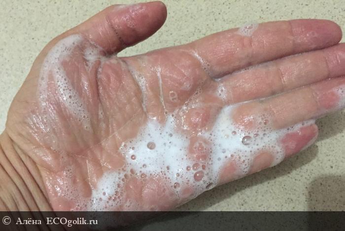 3) Средство быстро смывается. Во время умывания нет ощущения «скользкой кожи».