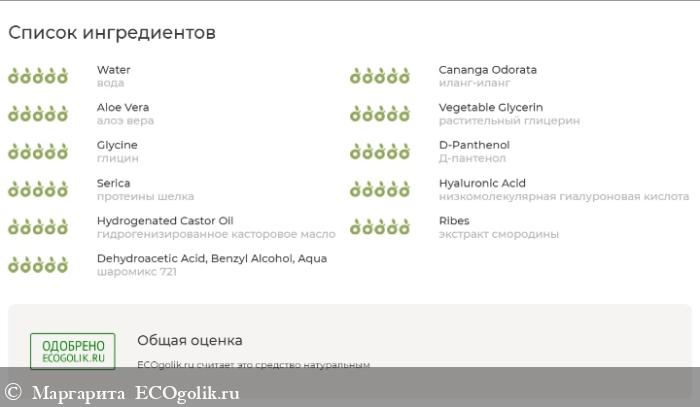 В составе гиалуроновая кислота для поддержки уровня влаги в клетках кожи.