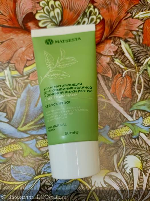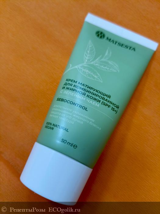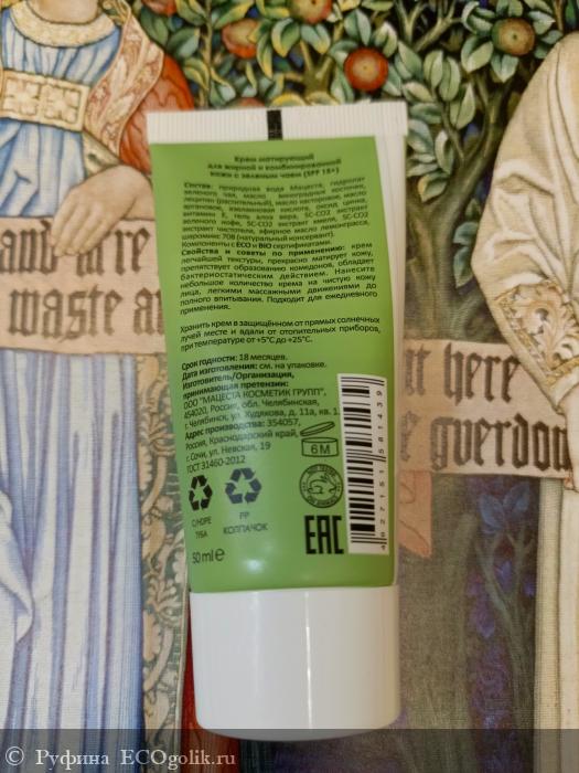 Он чем очаровывает это крем. Матирующий крем для жирной и комбинированной кожи с зеленым чаем (SPF 15+, 50мл, туба) подойдет не только при жирной коже, но также при коже с розацеа. В нем есть азелаиновая кислота. Она антивоспалительно действует на все виды прыщей и угрей, включая розовые, как при розацеа. Состав очень хороший, натуральный - природная вода Мацеста, гидролат зеленого чая, масло виноградных косточек, лецитин (растительный), масло касторовое, масло аргановое, азелаиновая кислота, цинк, витамин Е, гель алоэ вера, экстракт зеленого кофе, экстракт хмеля, экстракт чистотела, эфирное масло лемонграсса…
