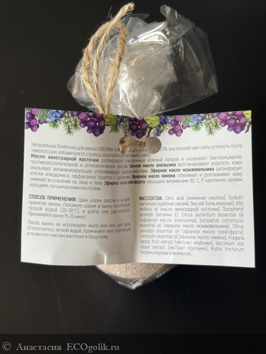 Всем привет! Для любителей принимать ванну есть такие товары как шипучки и бомбочки для вам и я хочу рассказать об одной такой - об ягодной Бомочка для ванны от бренда Siberina, ягодная, с хорошим составом. Завернута бомбочка в прозрачную бумажку, завязан веревочкой и это всё выглядит красиво и даже как подарок. На веревочку привязана этикетка, где вся информация про бомбочку ягодную.Этикетка красивая,...