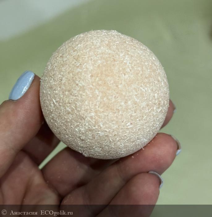Розовый цвет бомбочке даёт натуральный краситель - корень марены красильной, который также обладает тонизирующим воздействием на кожу.