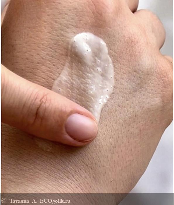 Консистенция лёгкая, флюидная, молочного оттенка с нежным цветочным приятным ароматом.