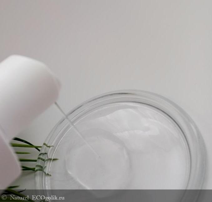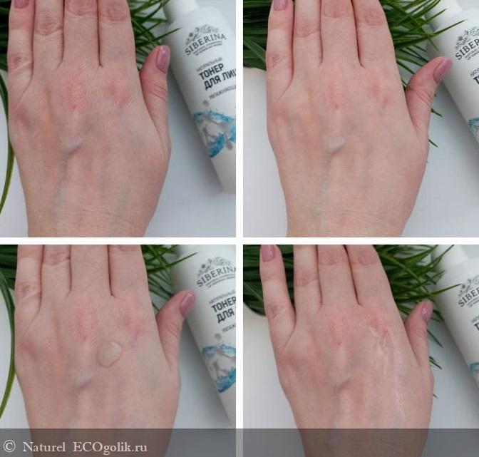 Внешне тонер похож на водичку, такой же прозрачный, однако в текстуре ощущается некая плотность и стабильность, но без утяжеления.