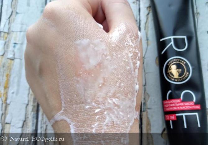 Формат упаковки удобен, сделан из мягкого пластика. Консистенция гидрофильного масла густая, цвет нежно розовый, ненавязчивый аромат розы.