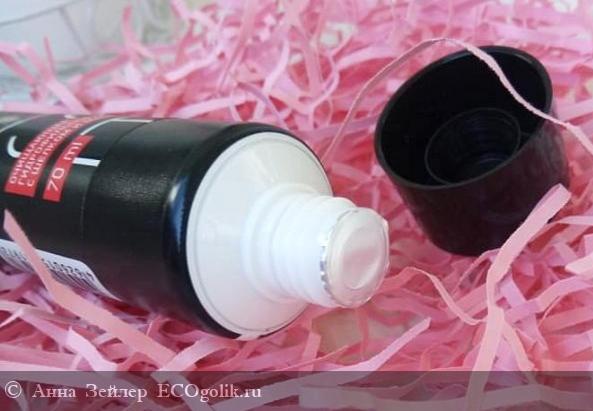По консистенции довольно плотное, это благодаря натуральному стабилизатору вязкости натрию ПКК, при выдавливании из тюбика держит форму