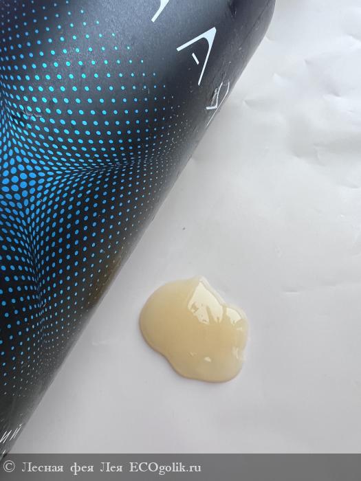 Гель-эксфолиант хранится в чёрном флакончике, изготовленным из полиэтилена высокой плотности низкого давления, в объёме 130 мл. Дизайн минималистичный, имеется рисунок синего цвета. Вся необходимая информация про этот уходовый продукт указана на влагоустойчивой наклейке, приклеенной на флакончик. Текст написан белым шрифтом на чёрном фоне. Информация грамотно структурирована и разделена на пункты,...