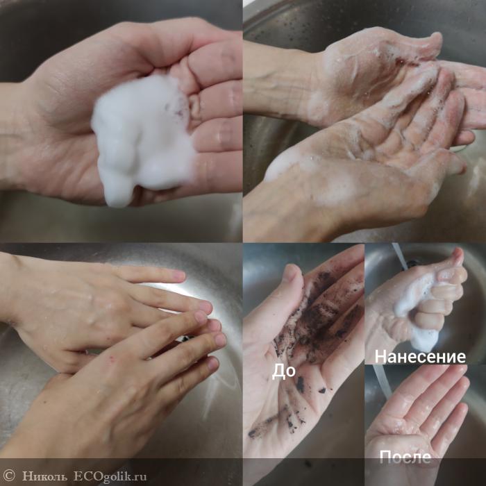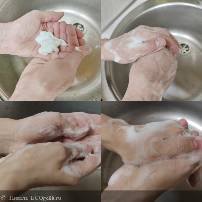 Пенка расположена во флаконе с помповым дозатором, качает легко и исправно. Пара нажатий и порция пенки готова, очищает загрязнения плюс пасту от ручек, косметику и прочее.