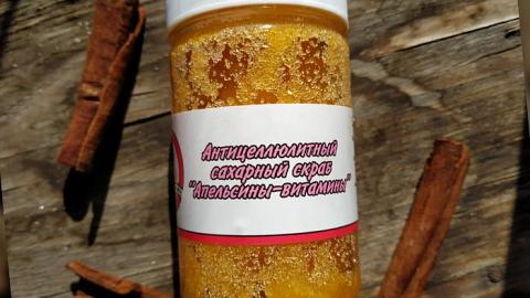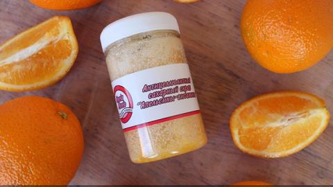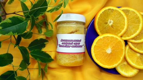 Антицеллюлитный сахарный скраб для тела с маслом облепихи и эфирными маслами апельсина и лемонграса.