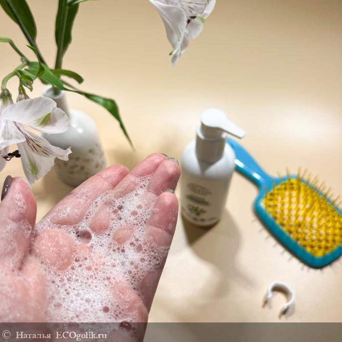 Шампунь хорошо пенится, отлично и мягко очищает, придаёт лёгкий объём, не пушит. Не спутывает длину, не сушит кожу головы и шевелюру. Облегчает расчёсывание, локоны после него послушные и мягкие. Волосики хорошо лежат, не топорщатся, не электризуются