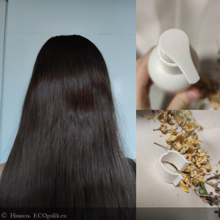 Шампунь хранится в пластиковом флакончике в объёме 200 мл. На него наклеена влагоустойчивая наклейка с изображением компонентов, входящих в его состав. Флакон оснащён удобным помповым дозатором. Консистенция у шампуня гелевая, текучая, имеющая лёгкий оттенок. Но расходуется экономично. Шампунь имеет аромат эфирных масел розового дерева и герани. Он отлично пенится. Обеспечивает мягкое, но эффективное очищение за счёт таких ПАВ, как: кокамидопропилбетаин, кокоглюкозид, кокосульфат натрия. Промывает бережно, не спутывая длину волос, а наоборот облегчает расчёсывание. Не сушит. Не сушит, не жирнит. Не влияет на частоту мытья волос. Хорошо смягчает, увлажняет, делает локоны послушными. После шампуня не электризуются волосики. Питает, разглаживает. В составе: инулин, глицерин, пшеничный протеин, альфа-глюкан олигосахарид, эфирные масла розового дерева и герани, витамин Е, экстракты (девясила, коры дуба, можжевельника, коры ивы, душицы, рябины, ромашки), масло конопли, морская соль.