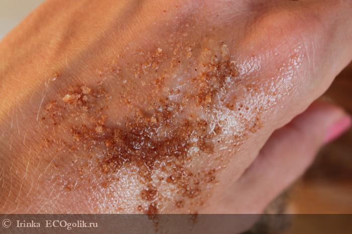 После смывания остатков скраба кожа остается хорошо увлажненной. После промакания полотенцем кожа на ощупь очень мягкая и нежная.