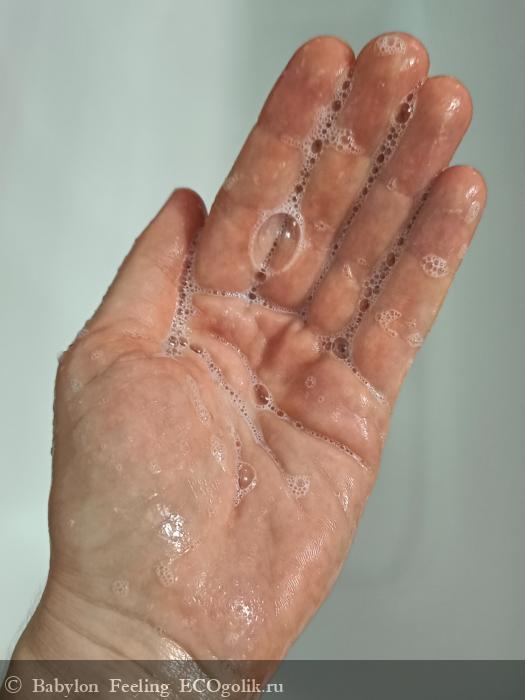 Мыло обладает густой гелеобразной текстурой, что обеспечивает экономный расход средства. Цвет — прозрачный.